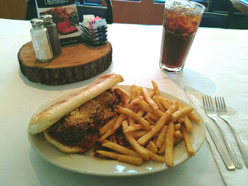 We went there on Mothers Day when they were very busy. We had been seated at the table for a solid hour before we got our food. The food was good but the kids meals were terribly overpriced - about $6 for one tiny mini-burger and one side. We asked to have an extra side of fries because the kids were starving after that long wait. The fries were added to our bill but the server did bring us two extra rolls. I asked to substitute coleslaw for the side salad but then had to request the coleslaw twice before I got it. I understand that the service is better on normal days, but the restaurant was clearly unprepared to deal with being busy.