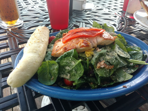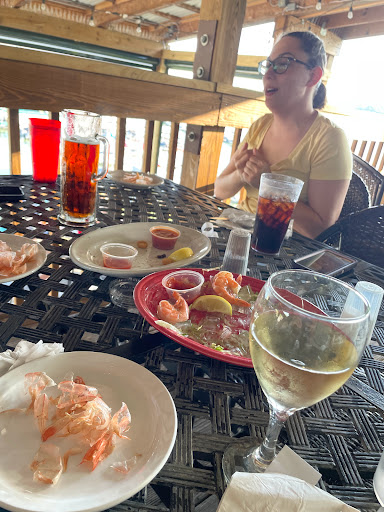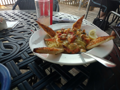 Ainsleys is great because of the location, view, variety and types of food offered and the atmosphere. Adult seating in the bar, some seating outside the bar, a second room with a bar and three outdoor decks with two levels. The Captains steak sandwich has been a reliable favorite, one time I had the best cheeseburger in my life here...I was drunk. The shrimp bianca is another favorite...I usually get the appetizer and then get a salad. Pizza was better the next day, cold. Steaks have been consistently been cooked to order. They have a special Acapulco nachos which is perfect over a couple of beers. Id give it a 5 just because it is the only gig on the lake and is pretty good all around. Atmosphere , quality and variety of food. A few of the servers are not very attentive. I think it is more a training or college age thing. Some are terrific but you cant choose your server. There is also not a very good place to wait if it is raining or hot. The foyer is small and the restrooms are super busy. You can stand outside with the smokers.