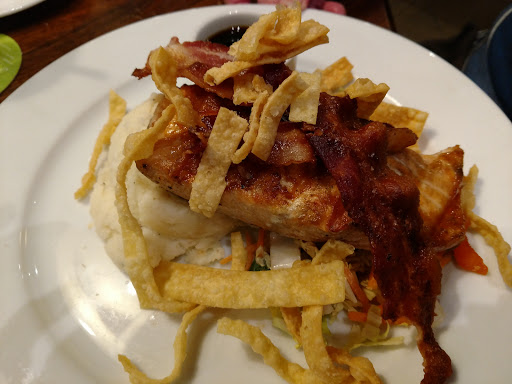 I enjoy Boulder Creek each time I come. The decor and seating is very cozy and has a relaxing rustic setting. From starting the meal with their freshly baked bread and spiced oil to dip it in, to all the great menu options, Ive never been disappointed. The tenderloin sandwich is large and the pork moist and tasty. The bourbon burger cant be missed, for any number of reasons. And though you may not usually eat dessert, everybody should check out the options. Something will more than likely catch your eye.