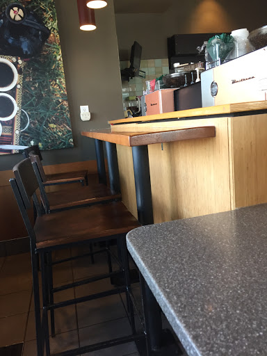 Friendly and upbeat atmosphere with a crew to match. Perfect for a quick break on the way to work or an extended sit and sip on the patio with friends. Music has never been too loud. They have a nice reusable cup selection. Cushioned seating inside and out gives you options and who doesnt like seating options? Even when its busy you can find a seat to chill in. They have umbrella covered tables outside which helps if you want to work on your laptop outside. Parking can get crazy when the drive-thru is busy but theres so much surrounding parking. You can park at the bank next door for a while or the liquor store just behind it. Parking in the liquor store parking lot would make for a swift exit. Everything is so clean. Even saw an employee cleaning the ceiling