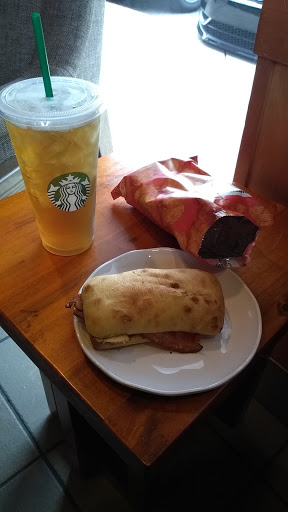 Stopped here on our way home from vacation, busy like most Starbucks but staff was friendly and efficient.