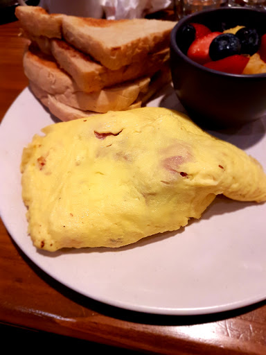 I had the French Toast, it was quite tasty, but not quite enough for a full hungry belly. I think that should be an expectation when you go here, good food, smaller portion and pay a premium. As someone else said the coffee is self-service style, and they say "Help yourself to some coffee". Be warned that there will be a coffee charge on your bill. I would go again, but this isnt like normal breakfast joints where you leave feeling miserable due to intake quantity.