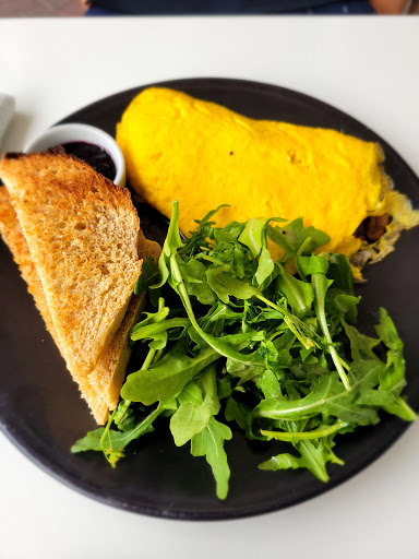 The way that they handle coffee here is frustrating. 3 dollars for a cup and you are expected to get up and serve it yourself. I dont understand their reasoning unless theyre trying to persuade people to drink less of it. Restaurants that try to pass off laziness as a "neat, quirky feature" have always been a pet peeve of mine. When I consider that we saw our "waiter" twice and he wasnt even the one who brought us our food, I wonder what we tipped him for? The quality of their ingredients is very nice though. I had one of their egg sandwiches and my wife had their breakfast crepes. Id say my choice was the winner. Her crepe was well made but seemed to lack a lot of flavor. Mine was just a simple egg sandwich on sourdough, maybe not worth the 10 dollars but I left pretty happy with it. Something that could easily be made at home. Both came with a nice fruit cup. Strawberries, blueberries, pineapple, etc... I was pleased to see no melon! Honestly, I wouldnt have reviewed this place one way or the other, but as petty as it may sound, the coffee situation really left me agitated. I really dont think that it is neat to get up and leave my table and my wife to pour myself a cup of coffee from the "bar".