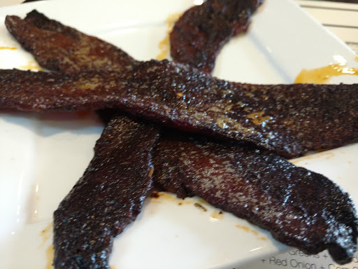 Delicious super juicy burger (BBQ), big portions at a reasonable price. Onion straws and fries were equally tasty. Huge selection of beer on tap if that is your thing. Quick service. The beer/bar bacon, an unlisted menu item, is very good and a reasonable price.