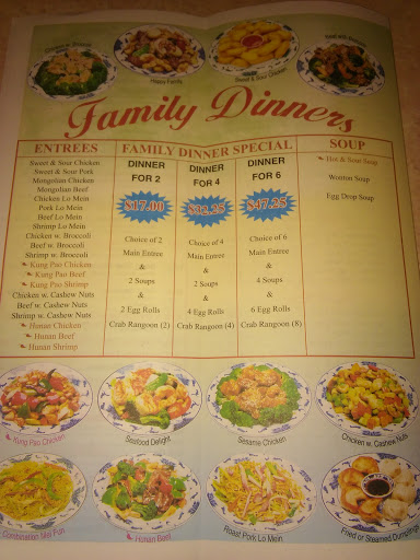 Have gone there for years. This time the food was average. The owners screaming children running through the restaurant did not help. The crab Rangoon is the best I have ever had.