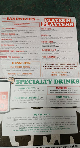 I Love the food at Barefoot! The pricing on the food is great. The service is slow most time I go in but the food and bottomless fries keep me coming back. The fries are some of the best Ive ever had! My only complaint about Barefoot is better and faster service.