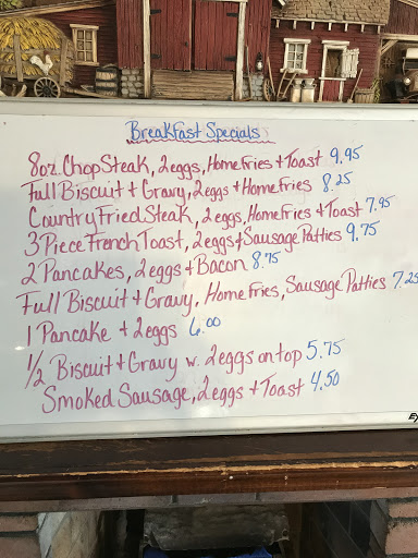 Good home cooking, Chicken and Noodles Hand Breaded Tenderloin, Elk burgers, hamburgers, Salid and a good selection of pie...Friendly staff, clean place, old school dinner atmosphere and lots of local repeat customers...good coffee...well worth the stop...very reasonable prices