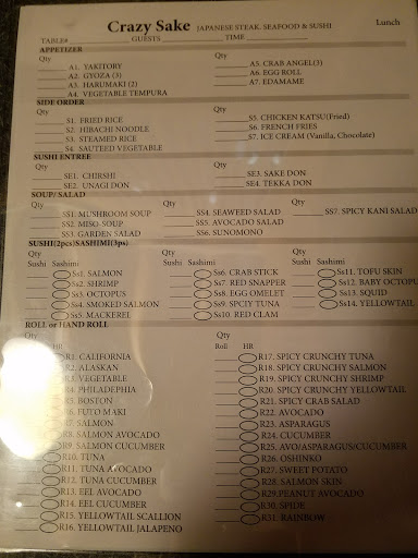 This hibachi and sushi is, hands down, the BEST in this city. Ive tried them all, some are good, some are great and some are pitiful. But Crazy Sake beats them all; price, ambiance, service, taste, and freshness.