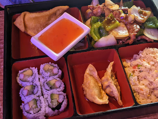 Great lunch spot located right next to LA Fitness. Very clean restaurant with a fast, friendly staff. Bring an appetite because their lunch boxes offer generous portions. Lunch bento boxes include main entree, rice, spring roll, crab rangoon, 4 California rolls, and a choice of miso soup or salad. Give their tea a try as well.