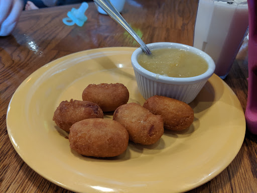 We came on a friends recommendation and are glad we did. What we didnt know is that you are supposed to bring at least one child with you when you come. I think number of "under 13" year olds was equal to the "13 and over" crowd. But they were all very well behaved. The place can be packed, so plan accordingly. We started with the pretzles and they were very good. I had the breaded tenderloin which was excellent (thicker than most, not tenderized to be paper thin and the size of a plate). My wife had the"Love me tender" chicken tenders and they were great (maybe her favorites in town). We will certainly be back.