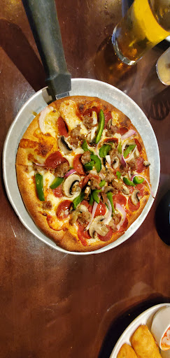 This is one of the best pizza places in Fishers. They have great bread sticks with real cheese dipping sauce, not that fake nacho kind you get at concession stands. Our favorite pizzas here are the Fun Guy and the Fresco. My one complaint is that they dont serve cocktails. Ive ordered wine here before and was extremely disappointed in what they consider to be a 5 oz glass. It was a very stingy pour.