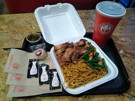Food is panda express (, but for the love of god, avoid the drive thru at all costs! There will be a 30-40 minute wait outside and people can walk in and get served immediately. I have lost count of the cars that left the line. Learn from my mistakes