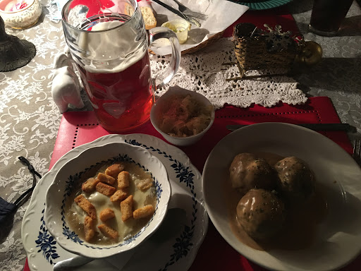 Really good German food. The music soundtrack will make you want to perforate your eardrums, but the food is good enough to more than make up for that.