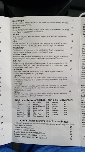 I liked the show and how they cooked the food in front of you but there really wasnt much understanding between the chef and customers....there a are things I cannot eat so I was kinda scared to eat it without knowing what sort of oil and sauces I was being served and they really werent open to explaining what they used... it was a great experience but unless you know a lot about japeneae cuisine I suggest you look up the menu online or call ahead and make sure that you arent allergic to the oils or anything...but other than that it was great! Had fun! The waitress we had was great the hostess was a little touchy had an attitude with us when we miss counted the number in our group but other than that awesome! I would recommend everyone try it at least once:)