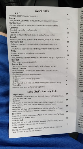 I have been to Soho a few times. The food is very good. The service was alright, not the best, but not terrible. This could be due to the fact that it is still relatively new, and as they say, "good help is hard to find". The atmosphere is quite nice. Kind of busy on the weekends, but enjoyable during the week. It has a nice layout the way it divides the restaurant into several distinct areas. They also have a nice bar that is seperated from the main dining area with an extensive list of beers and other beverages. One of the drawbacks of the place is that if the main dining area is anywhere near busy, you are practictly sitting elbow to elbow with strangers. Other than these couple of negatives, the positives shine through. The place is very clean, not too loud, invitingly lit, good food, and in comparison to other sushi places, not badly priced.
