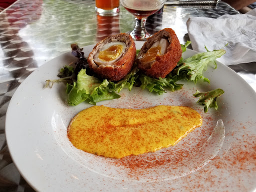 Great food made by a well trained and experienced chef. Love the Belgian stout. Big city restaurant in a little town.