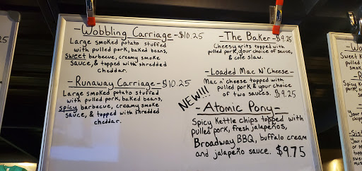 Love this place. Best barbecue in town. Try the enormous smoked potatoes decked out with pulled pork beans barbecue sauce and cheeze.