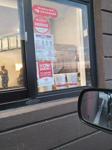 Only one star the service was bad when me n my bf got the the cashier was outside n was like be right in there n then when taking our order wasnt pleasant n then when we went to sit down the tables havent been clean floors with food n trash on them were u would get ur lids and starws it was dirty pop spilled n lids everywhere n no straws . The cashier was to busy smoking and being on his phone to wait in other customers. I will not be going back