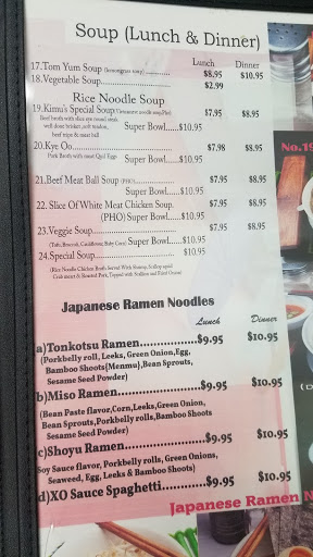 My wife and I have visited Kimu’s several times over the past few years. The food is ok and usually the service is hit and miss. We liked it because they are close to us. We’ve noticed on our last view visits that the owner’s family and friends are take care of first. Our last visit on July 4th of 2016 we placed our order, two families entered the restaurant after we had placed our order and they were severed food first, we sat waiting for 40 minutes and still no food. We also noticed that one of the tables received the exact same food as we had ordered, again these folks entered the restaurant after we had ordered or food. As a result, we just got up and left and will never visit this restaurant again, it is very frustrating. Instead we went to Pho’s Egg Roll number 1 in Beech Grove, the food is 10 times better and the service is awesome.