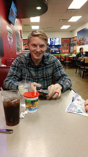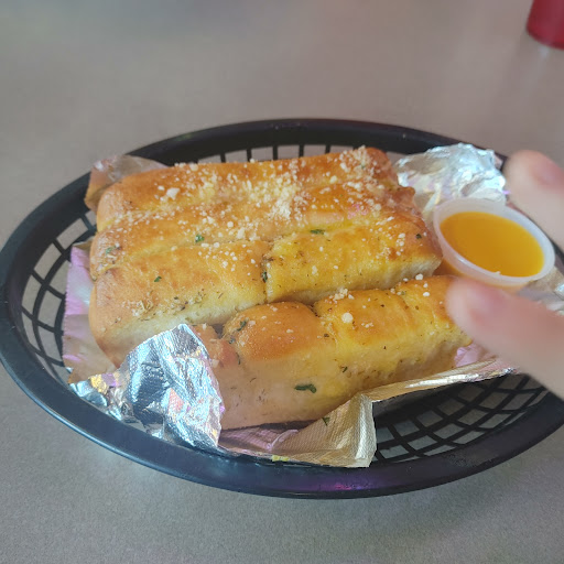 The breadsticks were not good at all. They have that very dense, thick texture. The top of them had been soaked in an oily garlic butter that, didnt have a bad flavor, but I couldnt get past the ridiculous denseness of them. When the pizza arrived at the table, it looked like it was gonna be really good. Not the case. The pizza sauce had an overwhelming tomato flavor. The dough was not bad, however, when it started to cool off, it had a gritty texture to it. The service was pretty good and they were very friendly. My overall thoughts are, its not a place that I would return to....