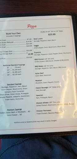 First time trying this place. Service was good. Mozzarella sticks were of walmart frozen variety. Ordered a 10in pepperoni deep dish. My wife compared it to a chef boyardee pizza from when she was a kid. I ordered the supreme special and tweaked it to add black olives and sardines with no green pepper. How did i get it? With green peppers of course. My server apologizing says they were supposed to read the ticket. "Duh". I cancelled my order of course because my family is eating. Pizzas already took 40mins to come out. No manager anywhere to come to my table and say " my badd ". Last time here i promise. If you read reviews consumers beware. No accountability here... italian beef was good though. Oh and the manager just walked by me delivering a beer outside. Smh! Added photos for proof. And the owner says to my wife 99% of the food comes out right. At the consumers time. He was a rude rude man, very arrogant. Shameful to say its a Chicago eatery. 48 dollars later lesson learned.
