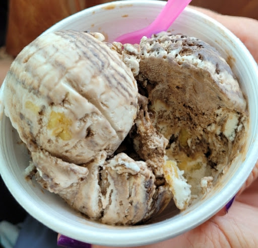 This is a small ice cream shop. The servings are big and the ice cream is good. Has outdoor seating and right by a park. Only accept cash.