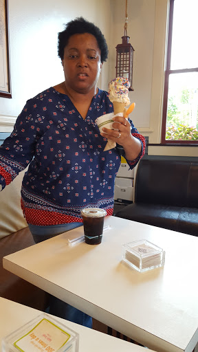 This place next to the Monon Trail is great for a family outing or a casual date. The atmosphere is pleasant, and the staff is friendly. I was surprised how nice a place it was on a cold winter day, with the fireplace going and a cup of coffee, so dont put off visiting just because its not summertime! There are also vegan ice cream flavors available for the dairy-free crowd, which is great. Ill definitely be back.