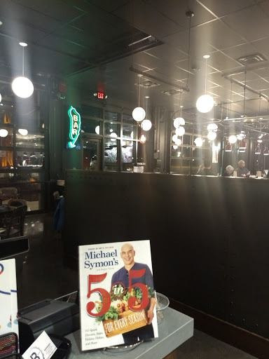 Classic rock and roll plays in the background, good beers are on tap, and the food comes quick. This "come as you are" restaurant is the latest addition to the growing list of burger places in Indy. This one comes themed as a motorcycle garage, complete with replacement parts, garage doors, and industrial themed fixtures. The look and menu is very much from the mind of celebrity chef Michael Symon. He can be found on Food Network and the Chew. Food options are very meat focused with a range of burgers, brats, and bologna. Yes I said bologna. Who didnt grow up loving fried bologna? Sides include shoe string fries, onion rings, and a side salad. Other salads are available but I would warn vegetarians that options are limited. I had the Funguy burger which has griddle onions and mushrooms, and blue cheese crumbles. The thick patty was served on a nice brioche bun that was well buttered. The fries were nice and thin with decent seasoning. I think the best part of the meal was the SMores Milkshake. At $8 its a costly treat but comes with enough for sharing. The marshmallow top comes well charred and gooey. There is a good kids meal available at a reasonable $6. We arrived around 6:45 on a Friday night and was told there was a 20 minute wait. After 35 minutes and several other patrons being seated, I asked about a table for 4. I could see 3 booths and a table that could sit myself, wife, and two children. It seemed the hostess forgot to check the call ahead list and was focused only on walk-ins. I chalk this up to being a new place so it wont keep me from coming back. Overall I would say the experience was great, the food was very good, and our server, Rachel, was excellent. This is a great place to come and enjoy a meal. It is very family friendly but I suggest you come at an earlier time unless its a group of adults that are not in a hurry.