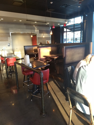 Took my mom to lunch here. The chocolate banana marshmallow and apple pie bacon shakes were delicious. So were the Lola fries. The atmosphere was very industrial and minimalistic in a very cool and interesting way. I ordered the ballpark brat and was disappointed. The brat was relatively flavorless and the bun was way too large and not very good. The onions they put on the brat were just cooked to softness when I was hoping for some crispiness. My mom made her own burger and loved it. Overall I give it a 3 because even though I liked the shakes and the atmosphere, its just like every other burger joint in Indy and I was disappointed in my food. I was hoping to be wowed and I was only mildly pleased.
