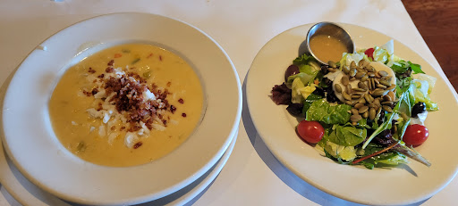 The pesto and the corn chowder with lump crab meat were great. The crab cake was good. My filet was more undercooked the further I went along. Our server was Brent. Brent likes to describe beverages in great detail and provide you with the stops he needs to make before returning back to you. Unfortunately he left out the specials and description of the menu items. I cut half of my upgraded 26.00 steak and asked for a to go box. I pointed out to him how the steak was undercooked. His response was I will let them know. I was feeling generous so I left a tip of 4.99 instead of the nickel I planned on a 72.00 check. Far too expensive for far less than perfect meat. I really am not hard to please. All he had to say was I am so sorry. But no Happy you were reluctant to do so.