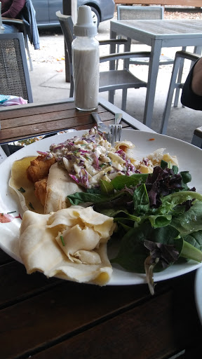On occasion, you come across a restaurant so perfect you try to look for faults as hard as you can. Nothing can possibly be that fantastic-Brugge is that kind of place. We went last night, Friday, April 2nd. It is/was Final Four weekend, incredibly busy and parking was a nightmare. We were wise enough to call ahead, and had a five minute wait. I appreciate the open kitchen design, as a future chef myself I like to know what to expect. Our table was on the upstairs balcony, where we had a delightful view of Broadripple and enjoyed the fresh air. If I had a complaint, it would be that the outside area isnt well lit and when the sun went down, seeing my food became a little bit of a challenge. This is likely a practical decision as Broadripple has an infamous insect problem. As excited about the beer as the food, I had the Tripel de Rippel. It was excellent, and the unfortunate first in a series of beer I had that evening. I should have kept notes, because I want to explain exactly what made it awesome, but unfortunately I dont possess that sort of memory. As for food, I DO remember it well. I ordered the cheese plate for starters, the steak frites for my meal, my husband duck confit sandwich with dried cherry and lambic compote with spicy mustard and fried leek the and our best friend the Indiana duck breast crepe with sweet onion confit. The cheeses were excellent, and I have no complaints against them. I do wish there were more to go with them, as by the end I was eating the cheese by itself and it got a bit pathetic after awhile. There were only 3 pieces of apple and a handful of bread slices....to share for 3 people. Fortunately our food came and I lost interest when I saw the sheer volume of frites and steak lying in front of me. My steak was excellent. Hangar steak is a tricky monster, but mine was excellently prepared-perfectly seared on the outside and still perfectly red on the inside. I honestly have no idea how people can eat steak anything but medium rare. Again, it was too perfect so I have to find something about it to complain about....there was just a little too much black pepper for my tastes. Though, you would not have known it had you seen me wolfing it down like a crazed animal. The frites? Oh the frites.....I cant say anything bad about them. They were amazing, and it is a rare occasion when something is salted to my taste. Ive been guiltily carrying around my own bottle of sea salt as of late, but Brugge beat me to it. They were, in a word, sublime. Did I mention their sauces? Home-made ketchup? Hot curry? Roasted Garlic Aioli? How can you go wrong? You cant. You seriously cant. Unfortunately I didnt get the chance to try my companions dishes. I polled them on their meals. My husband was impressed with his sandwich, though he thought the duck breast a tad dry. It didnt stop him from eating the entire thing, though. Our best friend enjoyed his crepe, though he commented that while the breast was perfectly moist, there were a few too many onions and not enough confit. All in all, they were very satisfied. As full as I was, I saw my husbands eyes light up when our adorable waiter, Noah, mentioned the Nutella crepes. We had to order them, and werent disappointed. The incredibly tart cherry syrup paired so very well with the rich hazelnut creme and was the best way imaginable to cap off such an excellent dinner. At some point I will break my no-seafood-in-the-midwest rule and try their mussels. I am still skeptical but have heard they are both fresh and incredible. One of these days, Brugge, one of these days. We will be back.
