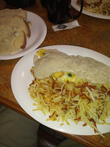 The food was average at best; very little sausage in my biscuits and gravy, and the pancakes were overcooked, dry and hard. The wait staff was below average, my wife wanted a fresh chip of coffee and our waitress wanted to debate as to how fresh it was, we are coffee drinkers, we know the taste of good coffee. Then, we could hear her talking smack about my wife. So far, or experience in Indianapolis, people arent grasping that they are in food service, thus they are being paid and tipped to SERVE US.