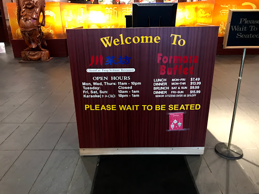 If youre in the mood for traditional American Chinese cuisine, served up with a heaping side of intestinal distress, then Formosa Seafood Buffet is the place for you! Immediately upon entering, prepare your senses to be assaulted by the enticing sights and smells of food (of questionable provenance) left basking under the heat lamps since what archaeologists have determined to be the late Pleistocene epoch. A typical meal at Formosa will usually begin with soggy egg rolls, wilted salad, and bland soup, though if youre feeling adventurous you can try the congee or boiled chicken feet. From there, diners are invited to tuck into sesame chicken, pork fried rice, mystery meat sushi, oily tofu in oil sauce (the token vegetarian entree), or a dozen other options, often greasy, invariably bland. Not enticed by the exotic flavors of the not quite Orient? Fear not: you can stuff your gullet with mac & cheese, fried chicken, Jell-O, and other classics that taste just like how Mom used to make them (that is, assuming Moms entire training consisted of a week spent at the Ronald McDonald Institute for the Culinary Arts). At this point in a buffet meal Id usually recommend a quick trip to the restroom to make some more space, but the facilities at Formosa should be avoided at all costs: wet, dirty, and perpetually soap-free, they invariably invite unappetizing speculation as to the sanitary conditions of the kitchen. Before making a break for the exit, be sure to visit the dessert bar, where you can choose from among a dozen frozen and reheated Chinese buns (the Jell-O might be starting to look tasty at this point). Dont forget to pickup an air sickness bag on your way out - if the food doesnt cause your stomach to turn, one look at the check will! Final verdict: the interior is actually beautifully decorated, and a few of the dishes are solid (although theres some inconsistency as to which dishes are good on any given day). However, the rest of the food ranges from disappointing to contaminated; in my opinion the decent food doesnt make up for the game of Russian roulette youre playing with your stomach.
