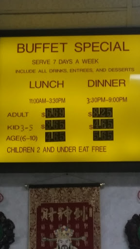 The best price for a Chinese Buffet in town!!! Better than Lucky 8 and Hibachi Grill they are too pricy and too much food not handling well and properly. I would not waste my money in eating at big or giant buffet restaurant. Remember we only got one stomach not 2 hahahaha...... even subway and enzo pizza just for one little entree cost more than 9 bucks and do the math