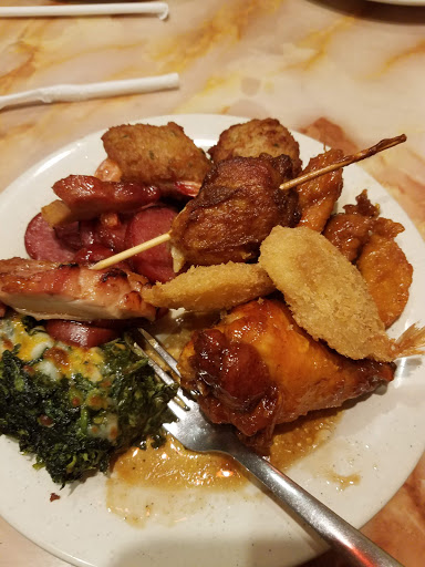 Went for dinner on Monday night. Big mistake! 1. Im pretty sure all of the food was leftovers from lunch time. No fresh stuff. A lot of it looked old, crusty, or soggy. And just plain gross! 2.Apparently they dont have sushi anytime during the weekdays . They advertise that they do, but they DONT! Worker said only fri, sat, sun. 2. Then they only had 3 flavors of ice cream, & 8 spots. They just repeated the same flavors in multiple spots like no one would notice. 3. Then there was the restrooms. !! Ugh! So gross! They look liked they hadnt been cleaned for the past 3 years ago. & im not talking like detailed clean, like Im saying even basic things like wiping out a sink, using a brush in the toilet, or just basically sweeping & mopping! They were disgusting! I will leave the part out of everything that I seen in there, and let you use your imagination. if their restrooms look like this, (I ask this question on several occasions & reviews) how far off could the kitchen possibly be?? Their employees & owners go to the restrooms everyday. They see the state it is in, but do nothing to rectify the situation. So again I ask, what does the kitchen & prep areas look like!?!? If they dont care enough about something that the customers actually see, then you know they dont care about the stuff that the customers DONT SEE! Im just sayin.......