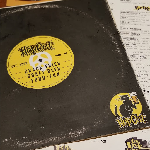 HopCat is a nice little place. It even has a parking garage on the other side of the building, so have a couple bucks for parking, or you can use a credit/debit card too. If you know the Broad Ripple area you know why this is great! The food is pretty good- I had a cowboy burger which came with crack fries, and they were delicious. I still prefer the loaded crack fries, they are a little spicy. The beer...there are so many different taps. If you arent sure, which is easy when you literally have over a hundred choices, the servers Ive had are knowledgeable and can help you narrow it down to a few choices, and they will bring you a small sample free of charge by request. Depending on the crowd you want, you may avoid weekends, or only go on weekends, but be prepared to wait for a short time because even the two massive bartops get filled up pretty easy, and they do have times that are only 21+ so call ahead to find out for sure.