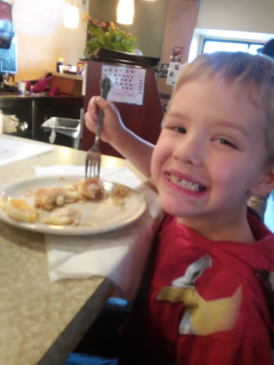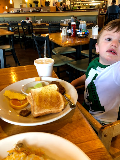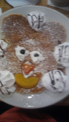 My daughter (3 yrs) and I went here one morning. There were very many options on the menu, but we didnt go to off the ordinary: We had: Buttermilk pancakes, Bacon, Coffee (me), Milk (her). We both enjoyed the food, it was hot and tasted good. The menu showed many wild choices - like Oreo Pancakes. Those types are not for me, we just wanted plain jane pancakes (or I should say Hotcakes). For us, it was exactly what we were looking for. The service was quick and friendly. One think I like is having coffee in thick, white coffee cups that keep the coffee warm and dont burn your lips. They have them here. I also noticed that they had staff who were fluent in Spanish. I liked it for a quick morning breakfast. It isnt super fancy, but it is a great morning diner. My daughter is ready to go back!