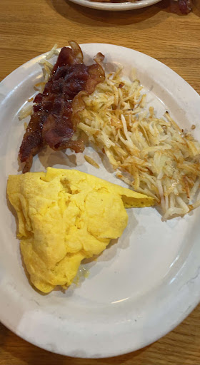 Had a BLT Omelet this morning! Plenty of food to go around. Pancakes were delicious, and they leave a large basket of flavored creamer on each table. Would absolutely come back and recommend to friends and family. Our server was great too.