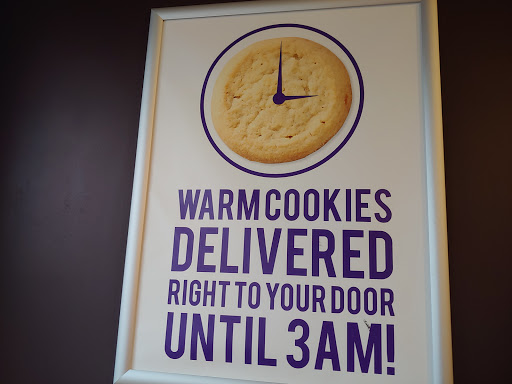 We ordered 6 cookies at 9:53pm, and they werent delivered until 11:20pm. Their websites tracker didnt work. Called costumer service and was put on hold (she way very nice about everything). Finally our cookies get here and they werent even warm. Usually they are very good cookies but this experience made me very unhappy.