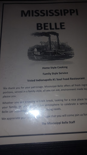 When you a southern girl & move to Indy & have to find a place that remind you of HOME!! My first time visiting here was with a friend girl I told her I wanted some soul food when I was pregnant she named a few but when she mentioned MISSISSIPPI I knew then it had to be some southern people in there. I was born & raised in Greenwood, MS. When we pulled up to Mississippi Belle just the smell of the food reminded me of home. The food smell & taste so good make ya wanna slap ya mama!!