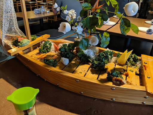 Overall 4 stars might be low, but I think its a fair rating for this trendy little chain. There was no line when we arrived for dinner around 6pm on a Sunday and the parking was great. We seated ourselves and found the place to be clean and open. Our server quickly got our drinks for us and gave us a few minutes to peruse the menu. He also did an okay job at explaining the menu (not the best, but it was sufficient). The menu was good - even for vegans (not great). There were some good kid options as well, but if you have a picky eater this is probably not the place. Food came fast and looked good - it tasted good as well. Im not sure how good because the wasabi was super hot and may have confused or covered up my taste buds (but thats not their fault). We enjoyed this restaurant and would definitely go back (probably without kids). Its worth a taste. The price was a bit high- but its trendy sushi and we expected it.