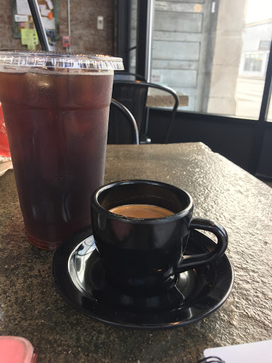 The owners were there and were extremely friendly! I told them I had missed the Yelp event the day prior, and they kindly gave me a tour around the place. I love the vibe of the place; the place is hip and well decorated. Its very cozy, and, the best part for me as a college student, theres an outlet at every table! Haha! No more searching for outlets or the awkward "excuse me?" As for food, they get their baked goods from a local place -- I cant remember where. All I can say is they looked scrumptious, but I sadly didnt grab a bite. I did get coffee -- just something simple: an iced Americano. It was smooth to the finish! I would love to go there again whenever I have more time in my mornings.
