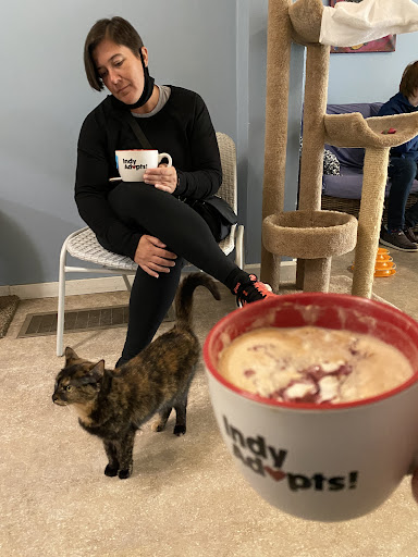 The staff is friendly, especially Lack, she is awesome! The cats were not super active then again they are cats...they have their own agenda. Only 5 cats because 3 had been adopted over the weekend! New friends in Tuesday, so come welcome them and you never know you may find a new companion. Get a Chai Latte! It is incredible. Catalina, Trixxie, Crickett and Mayor Cutie and, his sister, Mrs. Peepers are here. Come hang out with them. They will not be here long. I love what Nine Lives is doing! Keep up the great work!