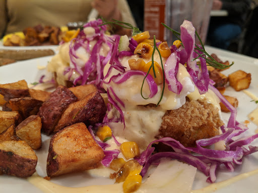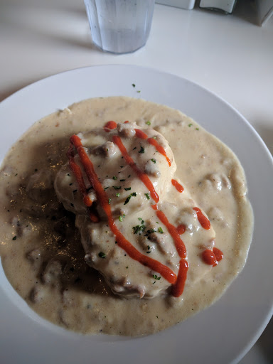 Our food was just okay. The poached eggs on my eggs Benedict were overcooked and my friends biscuits and gravy was cold. The service was great so I would go back and hopefully the food will be better the next time.