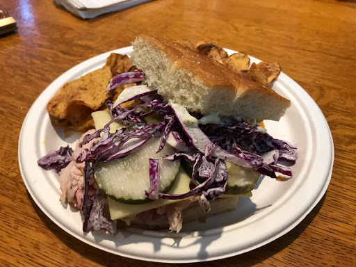 This place is amazing; dont even think about... you have to stop here. Delicious local coffees (I love the french press and cold brew), the sandwiches are to die for (doesnt even matter which one, they are all good), and the bread and scones are worth a trip all by themselves. And they have used books!!! Im pretty sure this is what heaven looks like :-) Everything they use to package a to-go order is either compostable or recyclable, which is awesome! I really appreciate that my to-go order doesnt generate a bunch of foam and plastic waste.