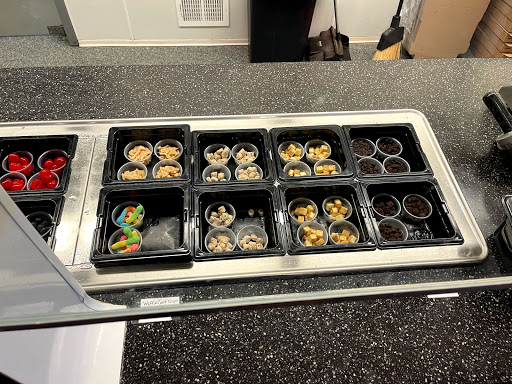 Red Line has my favorite frozen yogurt in the area. I dont generally go for toppings, but they seem to have a good selection. The seating area is nice and always clean. The kids really like the subway car and magnet wall. It is also connected to Chicagos, which has really good pizza.