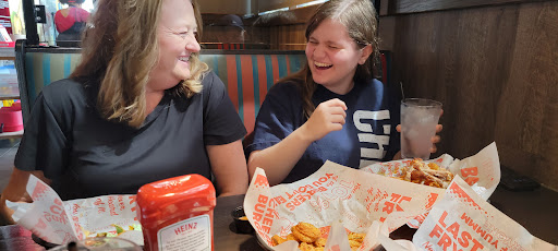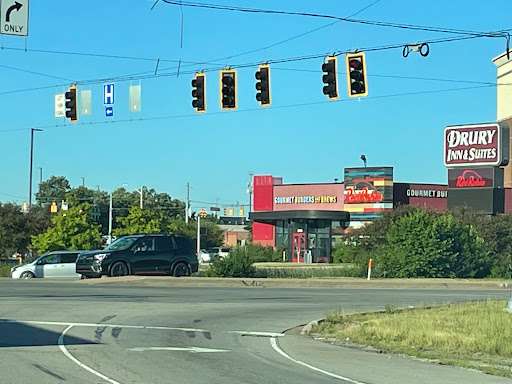 Inviting and cozy surroundings, friendly service and hands-on manager, can change any burger into a chicken sandwich/burger, various no-charge bottomless side item alternatives, free dipping sauces by request, bottomless root beer floats, convenient walking distance from the nearby Drury Inn. Visited with our Catholic faith group (about a dozen in our group). Servers and manager worked together to set up a table for us, and the manager generously offered our group a bunch of baskets of fries as free appetizers.