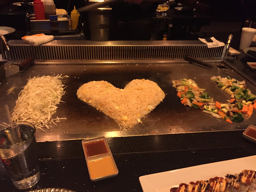 Its our favorite hibachi place. Weve been to a half dozen or so, and always come back here. Delicious fried rice + whatever meals! we usually get filet and teriyaki steak. The sushi is decent (Sakura is a good deal better though). The miso soup is perfect, and the salad with ginger dressing is wonderful. I always enjoy the friendly chefs, they put on great shows. But ultimately its the rice/veggies/meat meals that beckon us back. The sake is good too!