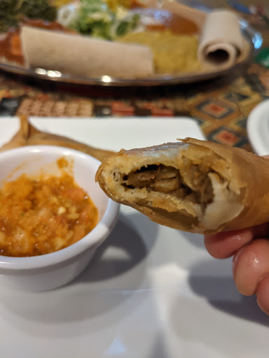 This is the most unique dining experience my wife and I have ever had the pleasure of sharing. The owner greeted our party at the door with handshakes and a warm friendly welcoming. The waitress was very knowledge about the menu and had lots of suggests to help ease our inquisitive minds. After the order was placed and our drinks were on the table the owner again approached us. His kind nature explaining Ethiopian culture and how exactly people are treated as guests as if invited into their own home. He truly made us feel like were visiting his home. Explaining that his wife was the cook and that whenever they serve you they believe the food is surrounded by angels. It was a very powerful eating experience for our entire party. The food was absolutely delicious. All of the ingredients are fresh and from the earth. We immediately made reservations to come back to celebrate Valentines day with them. Thank you so much your exquisitely beautiful and unique ambiance and the splendid food. It was a honor and a blessing to dine with you all. ❤️