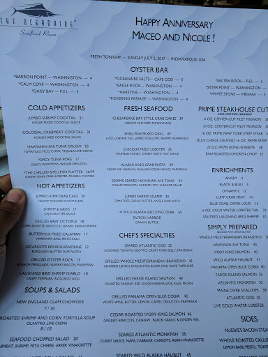 Tonight was the first time my wife and I ate there. It was extremely busy due to Final Four weekend, but the staff was courteous, competent, and attentive. Try did a top-notch job of making us feel welcome. Super romantic impress-your-date place. My wife and I both ordered the mahi-mahi served oscar-style in a buttery, crab-meat topped bearnaise sauce; I am not usually a fan of seafood, but was easily one of the best entrees Ive ever had. Excellent drinks (the Oceanaire cocktail complemented the savory elements of the meal nicely) and their clam chowder was a good kickoff. The criticisms in several reviews are totally disconnected with reality based on our experience, unless there have been major changes in personnel since they were written.